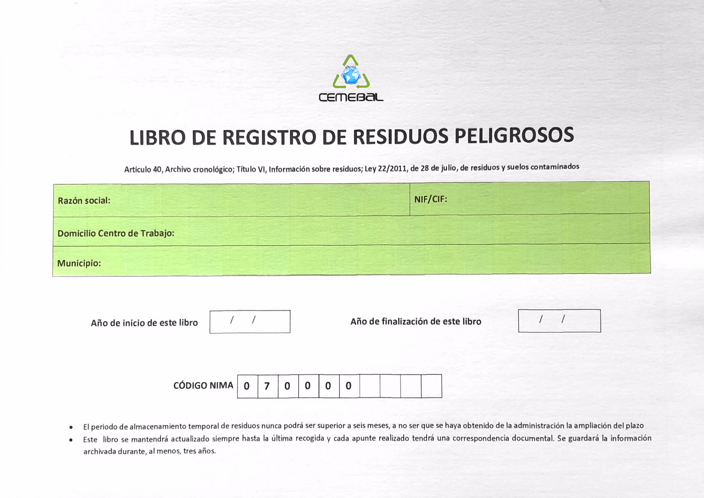 - Suministramos y revisamos periódicamente el libro de registro de residuos peligrosos.